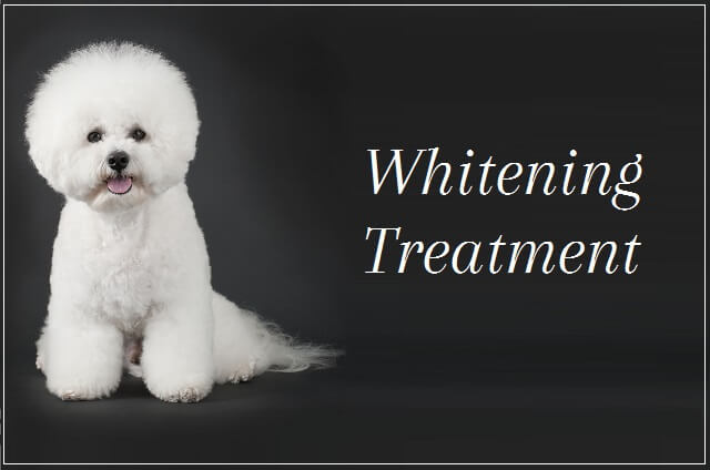Keeping your pooches coat pure and white isn’t the easiest of tasks. Tears, saliva, food and urine all cause staining so frequent grooming is mandatory to restore your dogs white coat. A monthly whitening treatment is recommended to helps lift stains and restore bright white hair.